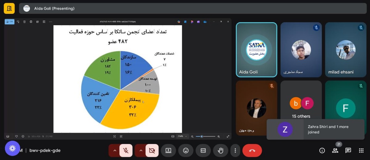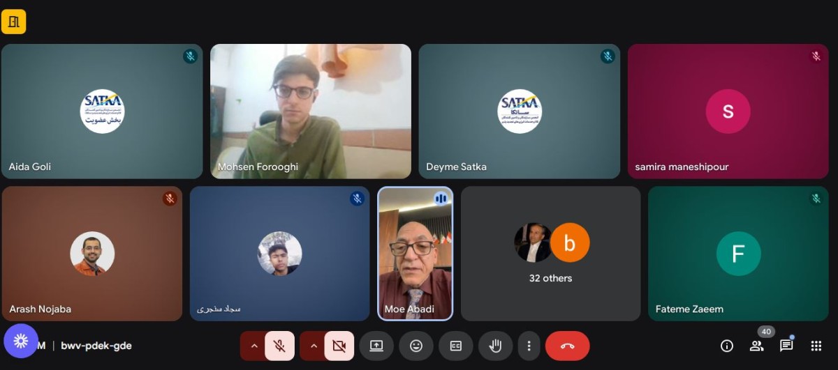 پانزدهمین جلسه ساتکا سلام (معارفه اعضای جدید انجمن ساتکا به اعضای فعلی و هیات مدیره انجمن) با هدف آشنایی و ایجاد زمینه های همکاری، روز یکشنبه 1404/06/30ساعت 14 الی 16 بصورت آنلاین برگزار شد.