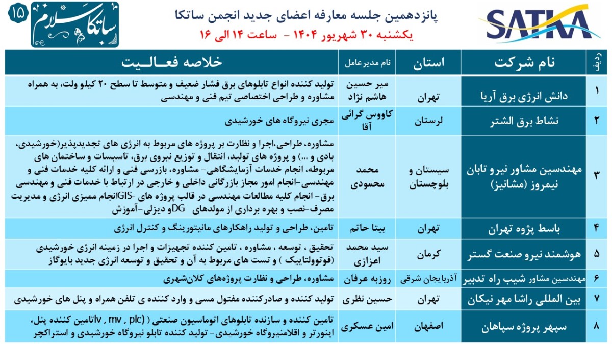 فایلهای ارائه شرکتهای حاضر در پانزدهمین جلسه ساتکا سلام
